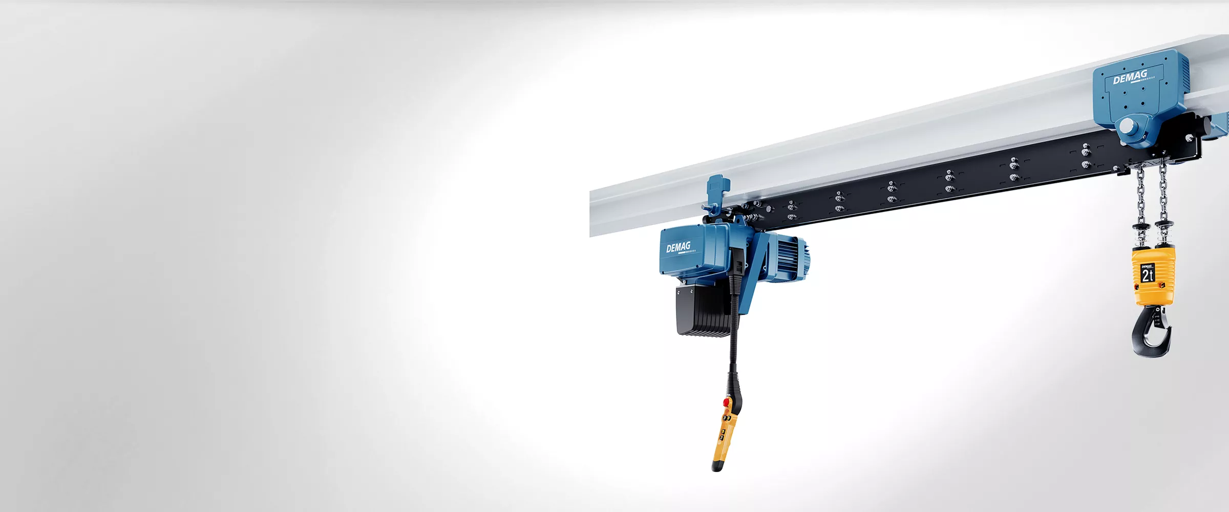 Demag KLDC 빅백용 주행 호이스트: 확장형 훅 리드오프와 최대 인양 높이